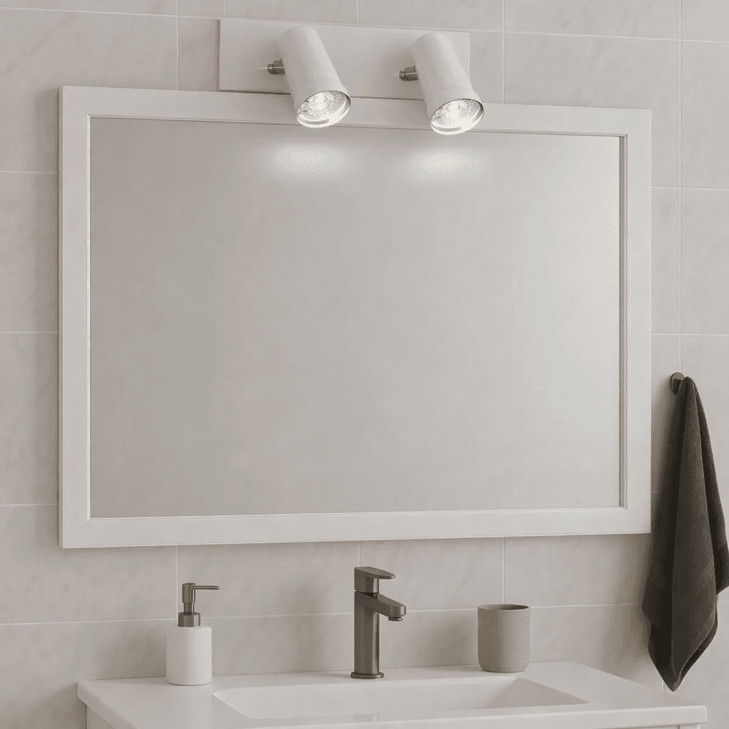 Esta luminaria complementa muy bien la iluminación principal del hogar y resulta especialmente funcional en baños, sobre espejos o en iluminación de cuadros. Además, su base rectangular es una gran ventaja cuando la caja eléctrica no está centrada, ya que permite ocultar desfasajes de manera prolija.