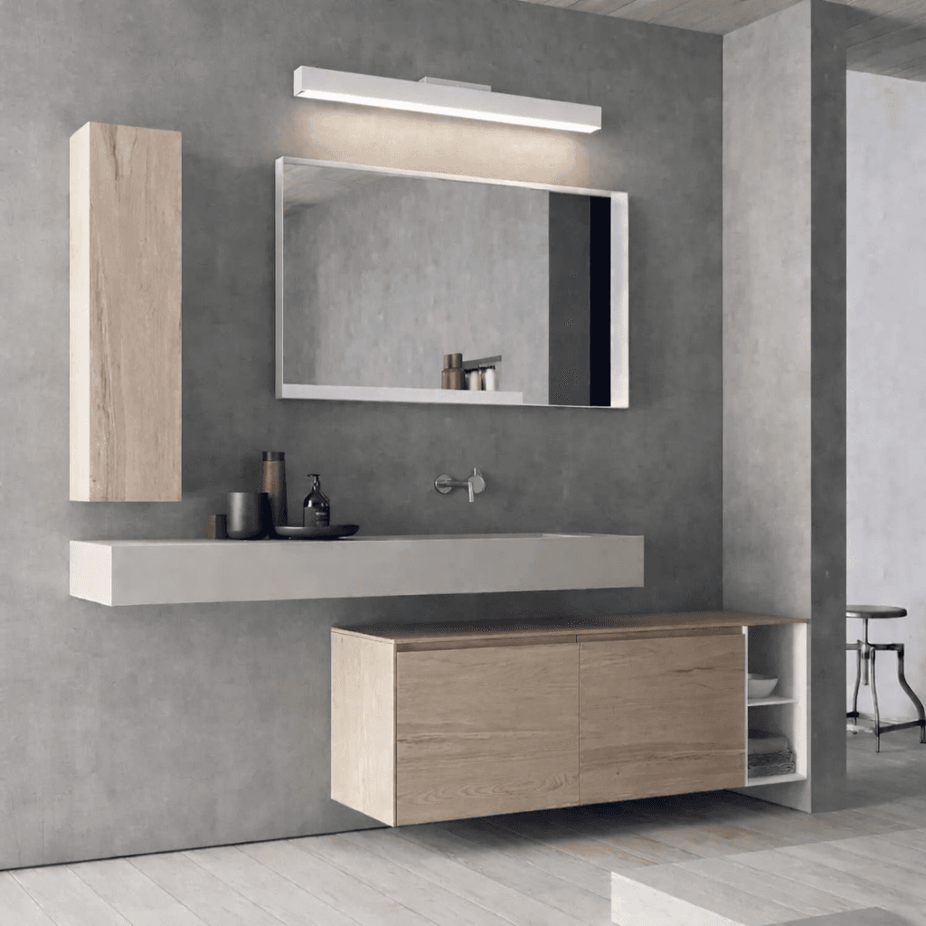 Gracias a su movimiento articular, podés ajustar fácilmente la orientación de la luz según tus necesidades, aportando confort visual y practicidad en el uso diario. Su estética minimalista se integra perfectamente en baños contemporáneos y ambientes modernos.