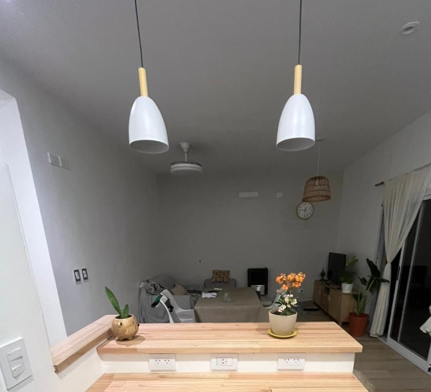 Las lámparas OVI de Ø18 cm ofrecen una iluminación puntual y directa, con potencia ajustable según el foco que elijas (el portalámparas admite hasta 26W LED). Son perfectas para colocar sobre una barra, comedor o living, aportando un toque moderno y acogedor.