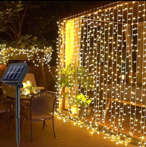 Nuestra Luz Cortina Solar 3x3M con 300 LED cálidos es la opción ideal para ambientar jardines, terrazas, balcones, quinchos o eventos especiales, sin necesidad de enchufes ni instalaciones complicadas.