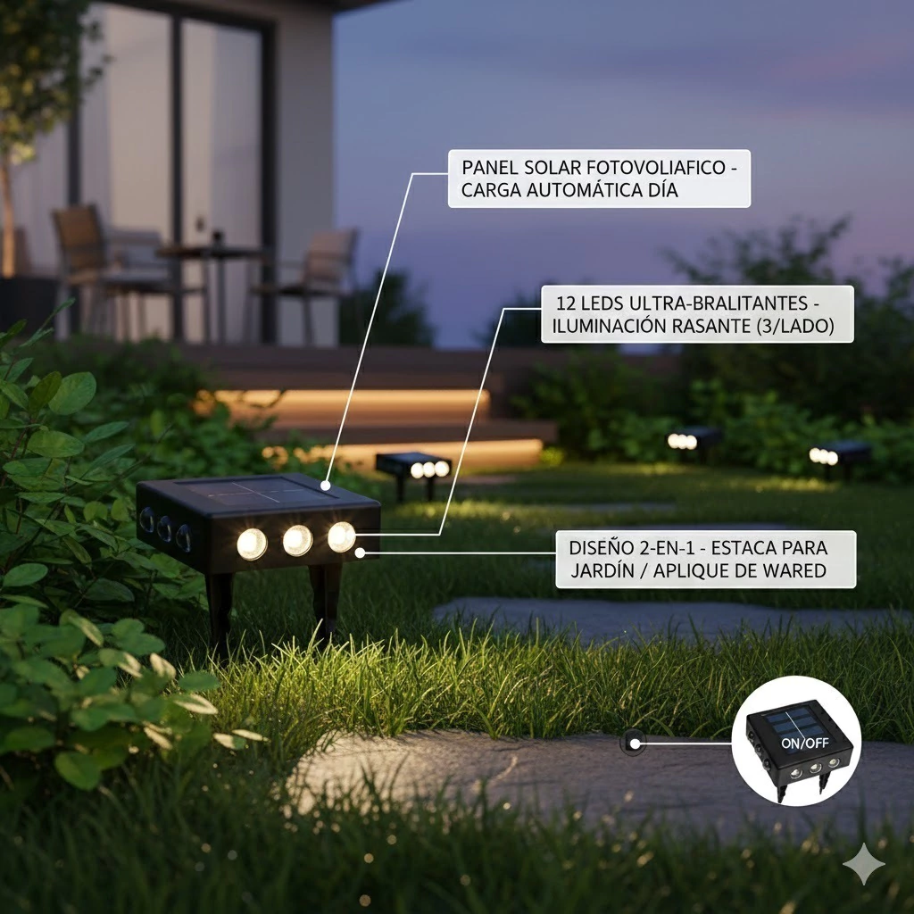 🌞 Estaca y Aplique Solar LED 2 en 1 para Jardín – 12 LEDs
