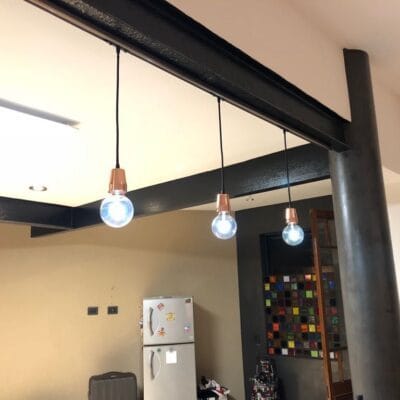 Perfecta para colgar sola o en grupos desde barrales, lámparas colgantes o artefactos con pantalla de jaula. La luz cálida y suave que emite aporta confort visual y una estética atemporal.