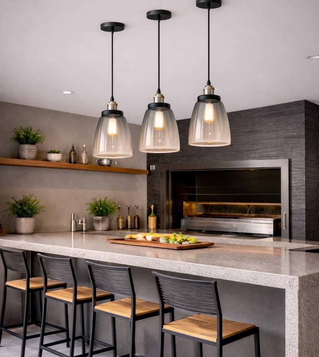El acabado Fumé presenta un tono gris ahumado semitransparente que suaviza la luz, generando una atmósfera cálida, elegante y contemporánea.