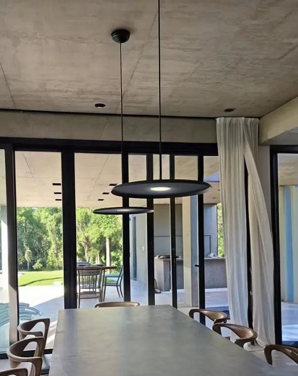 El colgante VK-TAIS es una luminaria de interior de diseño moderno y refinado, ideal para espacios residenciales o comerciales de alta categoría. Su formato redondo y plano ofrece una luz directa cálida, acogedora y eficiente, perfecta para generar ambientes elegantes y confortables.