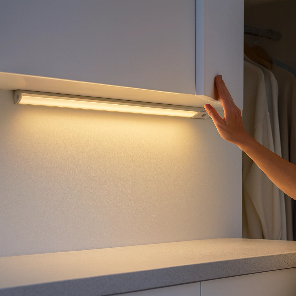 Práctica y funcional, esta lámpara LED lineal de 60 cm es ideal para iluminar interiores como placares, alacenas, bajo mesada, pasillos, dormitorios o espacios de apoyo. Su funcionamiento automático mediante sensor de movimiento permite encendido sin contacto, aportando comodidad y ahorro de energía.