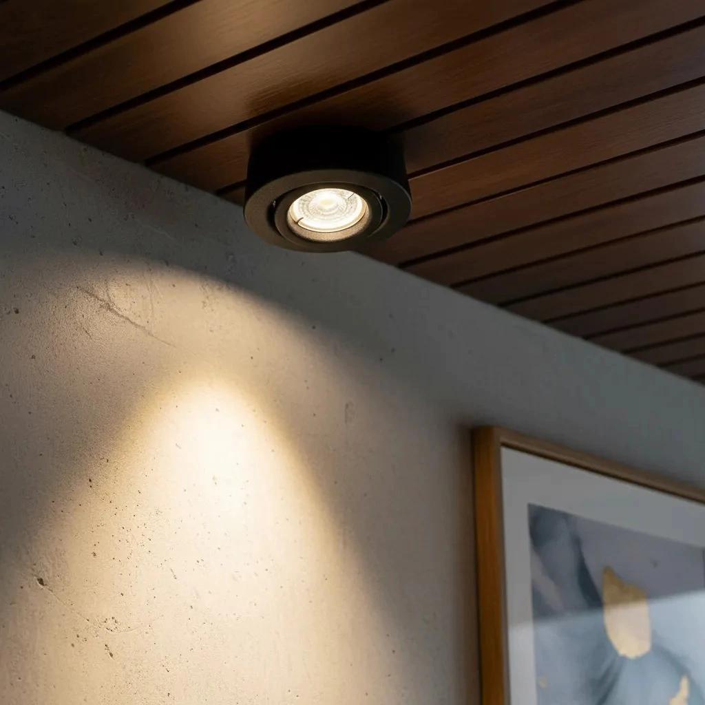 Gracias a su sistema para lámparas dicroicas o dicroled GU10, permite generar un haz de luz direccionable, ideal para resaltar sectores específicos o complementar la iluminación general del espacio.